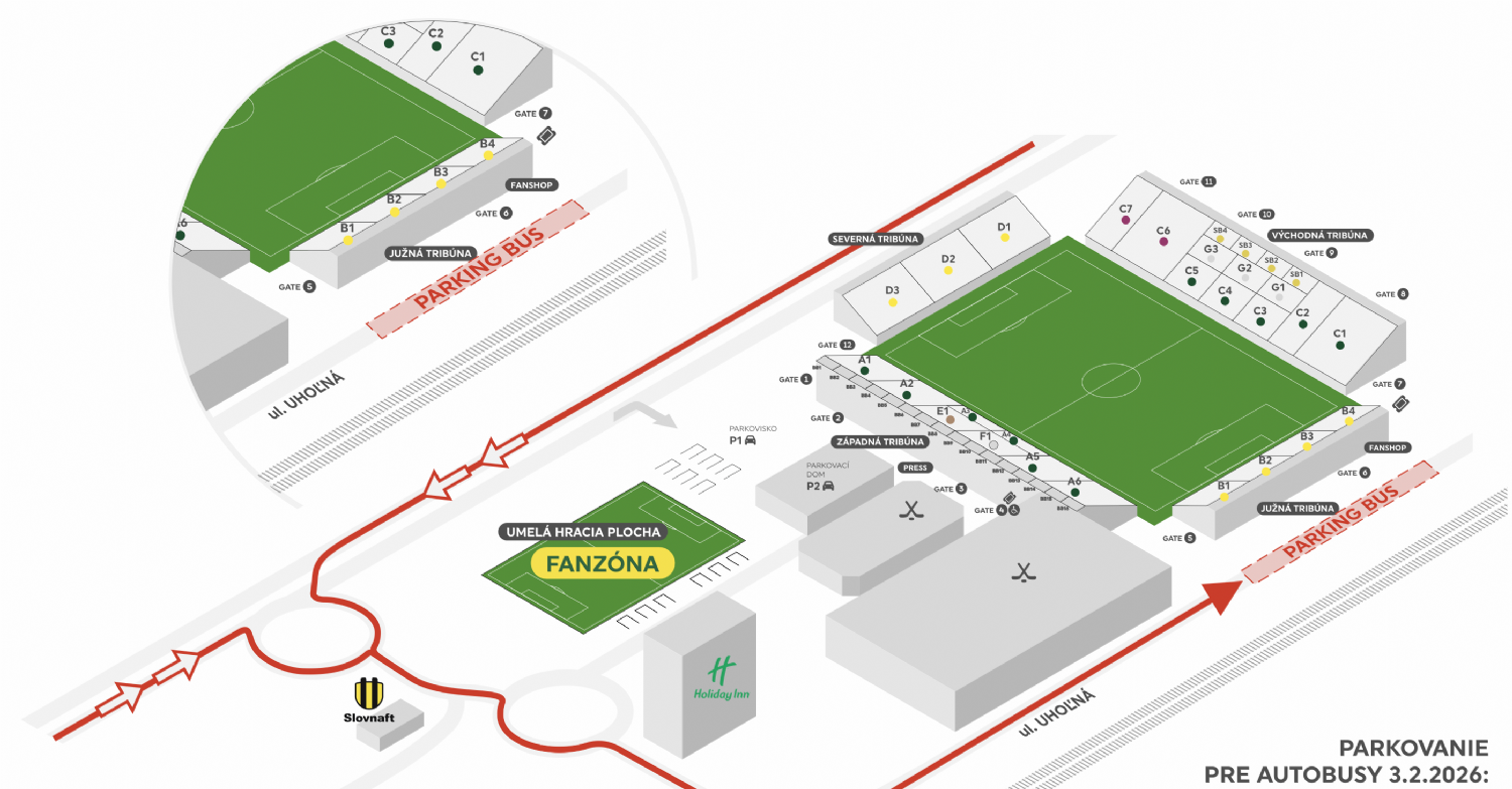 Fanúšikom sa odporúča prísť na štadión s dostatočným časovým predstihom, aby sa predišlo zdržaniu pri vstupe.