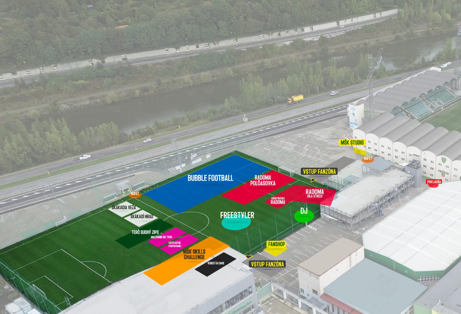 V areáli štadióna bude pred zápasom vytvorený priestor pre fanúšikov s dôrazom na rodiny s deťmi. K dispozícii budú:
